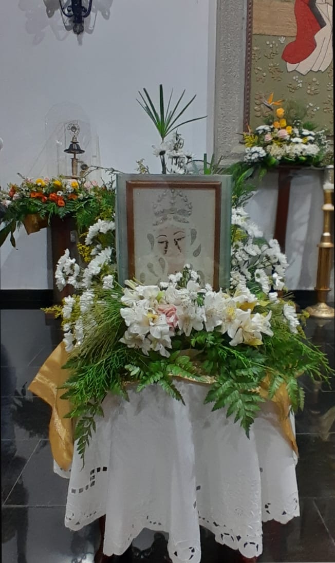 Donde se celebra cada 26 de octubre una misa, donde ahora está el Pbro. Rafael Ramírez, fue una misa muy linda, yo por motivos de salud no pude asistir y por motivos de la pandemia, fue limitado el número de personas. Agradezco, a María Mata, a Chabe, Leannys, Carmen Víctoria y Marino, su presencia en la misma. La Virgen, estaba preciosa, con un vestido que le pusieron el 8 de diciembre por la Sra. Marisol, realmente hermosa, siempre hermosa y el cuadro a sus pies en el nicho.