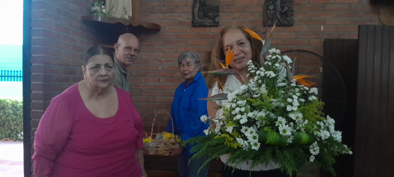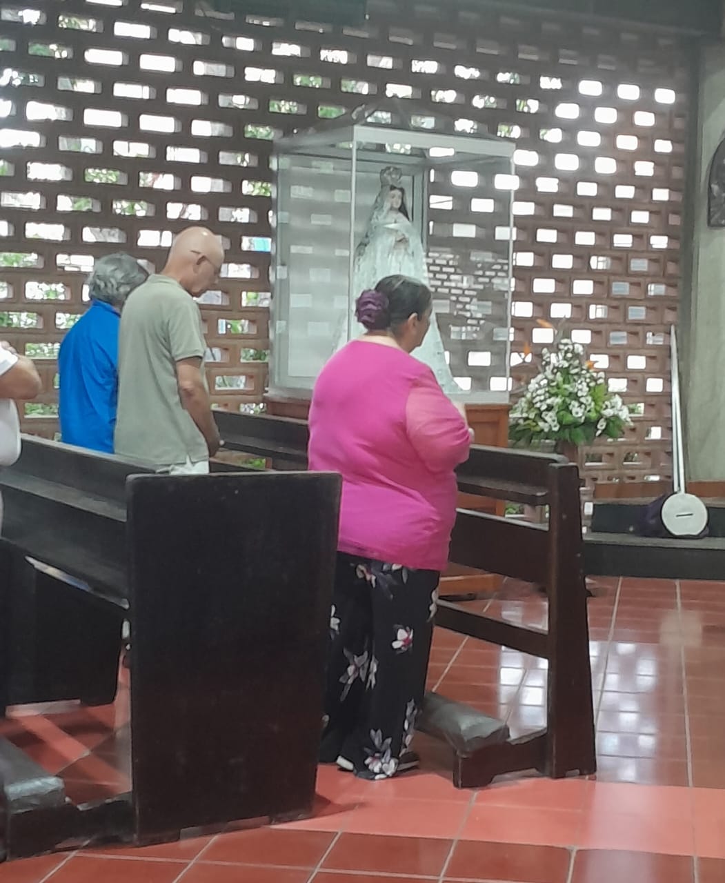 En la tarde, vestida con una linda blusa, regalo de Rosaura, volví a la iglesia, llamada Santa Teresa de Jesús y como llegué antes de las 19:00 hice un recorrido por la misma y tomé fotos. Tan pronto fueron llegando personas, me dediqué a regalarles la medallita y explicar el motivo de mi presencia. Rezamos el Rosario y al finalizar, les dije que quería compartir con ellos mi canto a la Madre y el Ave María de Gounod se propagó en el ambiente. Recuerdo haber saludado y salido. De inmediato me comuniqué con Rosaurita para expresarle que humildemente había aportado mi granito de arena y que, mientras cantaba, pude sentir que Rosaura estaba a mi lado y sólo deseaba mucha paz y salud para ella. Amén.