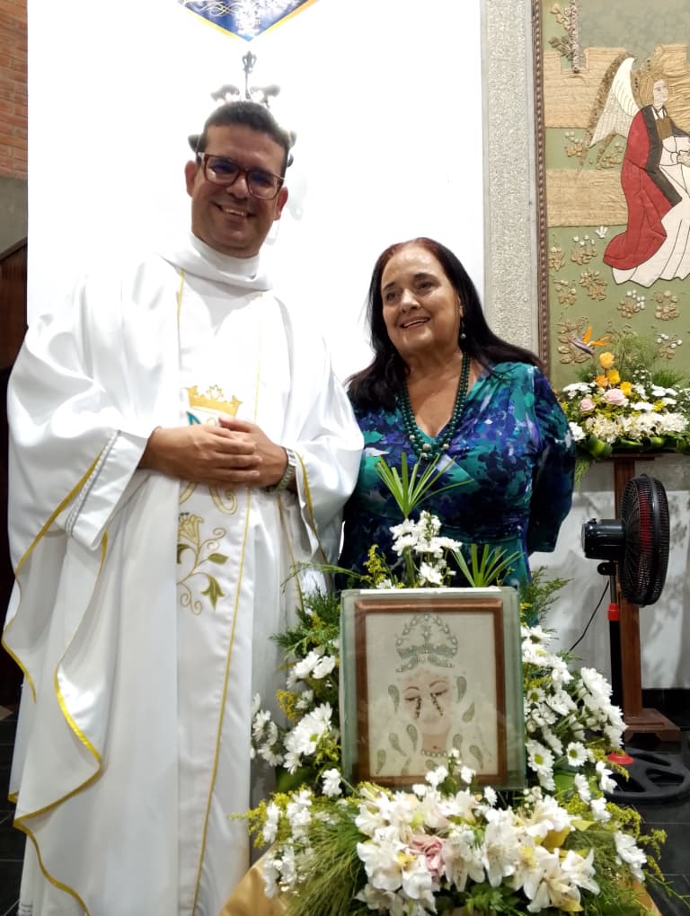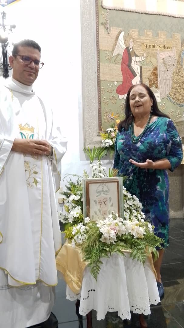 Cuando fue el momento, El Presbítero Nunzio Testa hizo especial mención de un cuadro de la Virgen que llevamos como una muestra de las obras de la artista plástica Rosaura Gonzalo e hizo un breve recuento del Milagro de las Lágrimas de Sangre ocurrido en la Isla de Margarita.