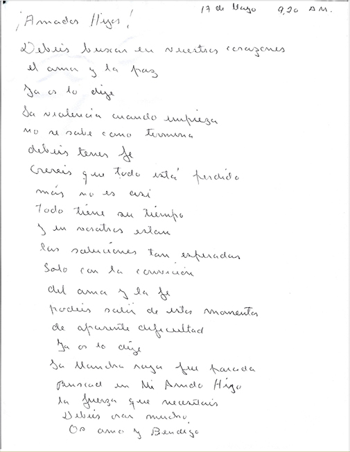Os Amo y Bendigo».