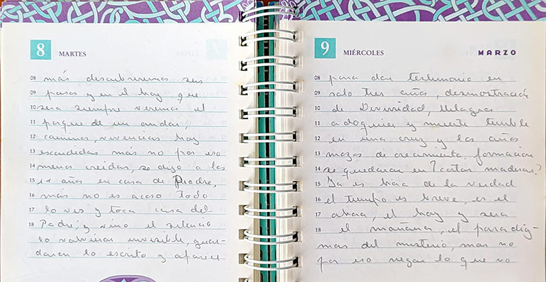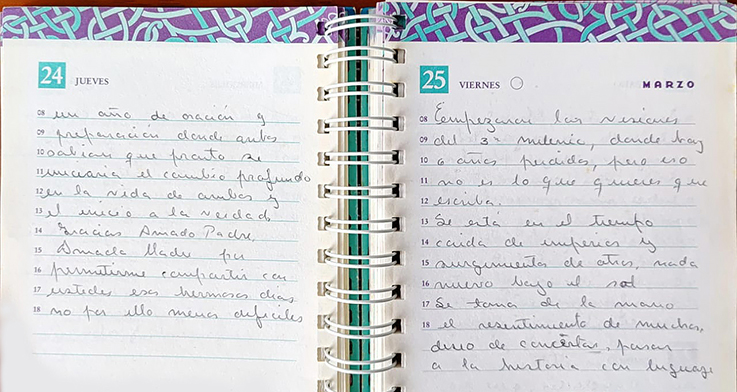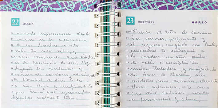 Me abres a un conocimiento donde el ayer, el hoy y el mañana es uno. Me das visiones, calmaré en Él mis inquietudes y trataré de ser solo una mano manejada por Ti en la Gracia de mí Amada Madre.
