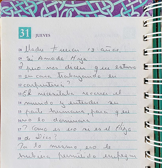 Fueron 13 años de caminar, ver, conocer, prepararte y al regreso, cargado con tantas emociones te entregaste a la madera un año antes de salir a cumplir Tú misión Redentora y disfrutaste del amor de Mariam, sus cuidados, sus silencios elocuentes, Madre silenciosa, dice más que mil palabras, unidos en pensamiento y alma; un año de oración y preparación donde ambos sabían que pronto se iniciaría el cambio profundo en la vida de ambos y el inicio a la verdad.
